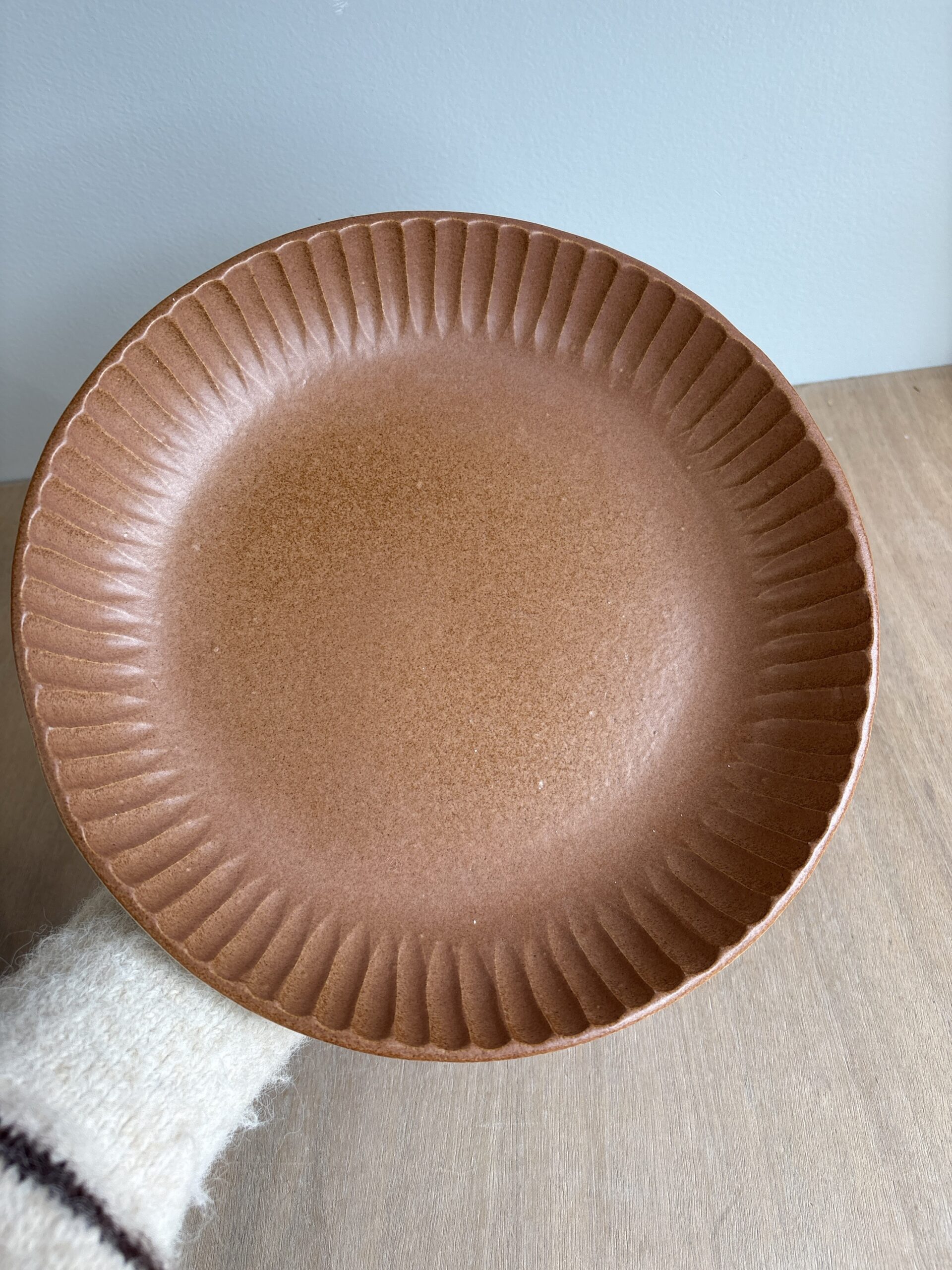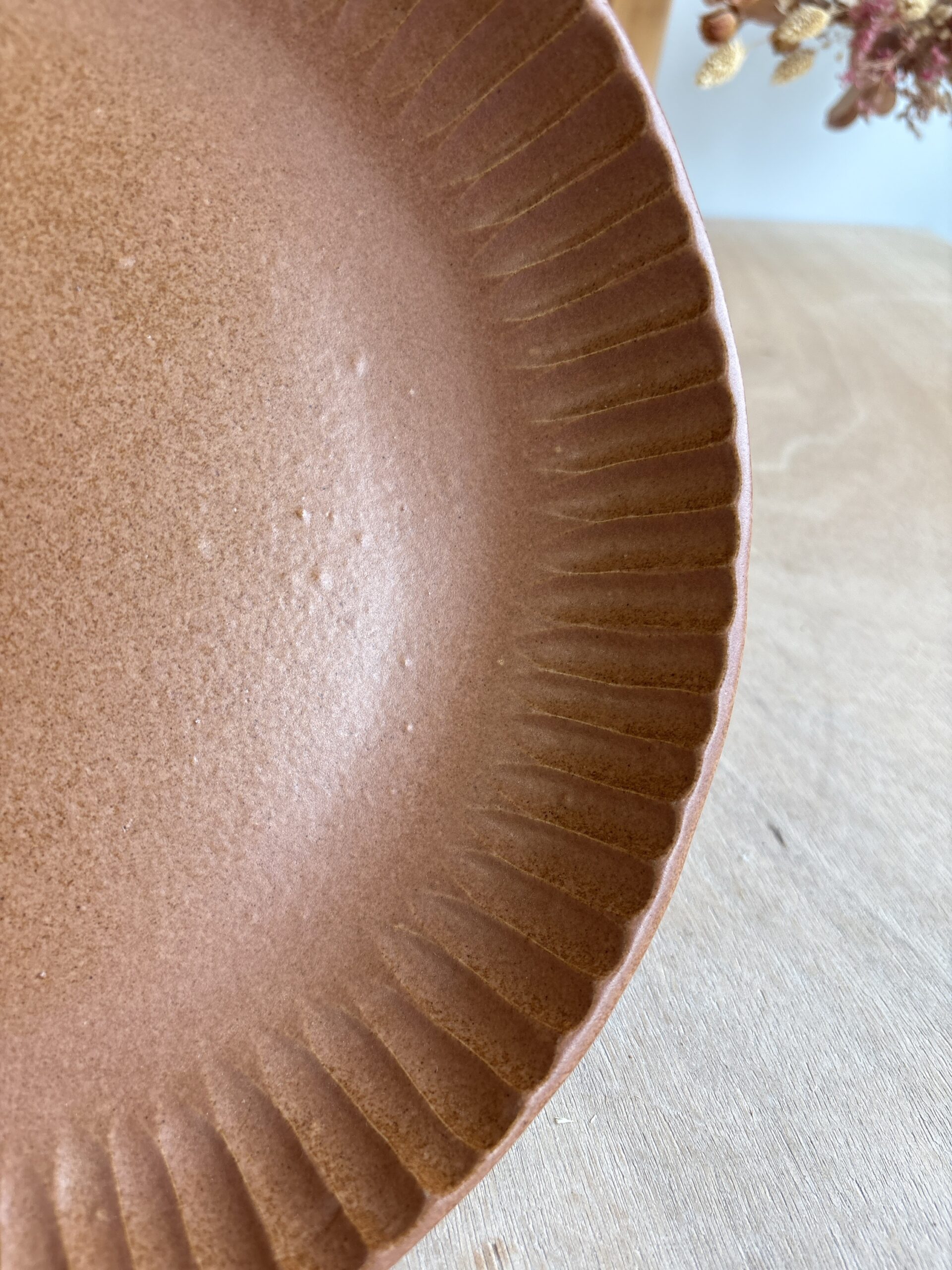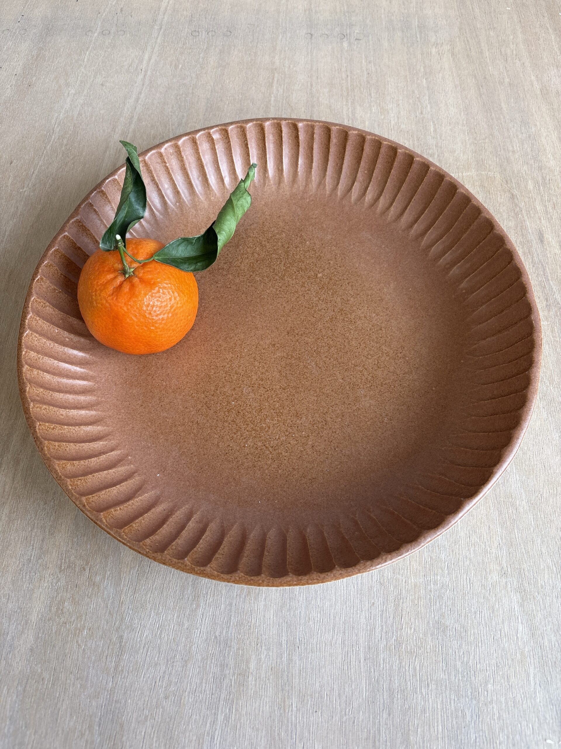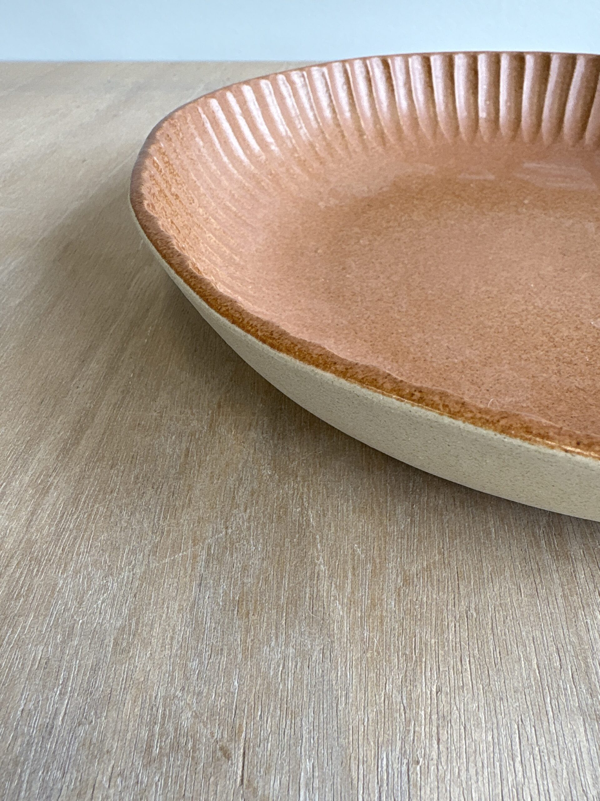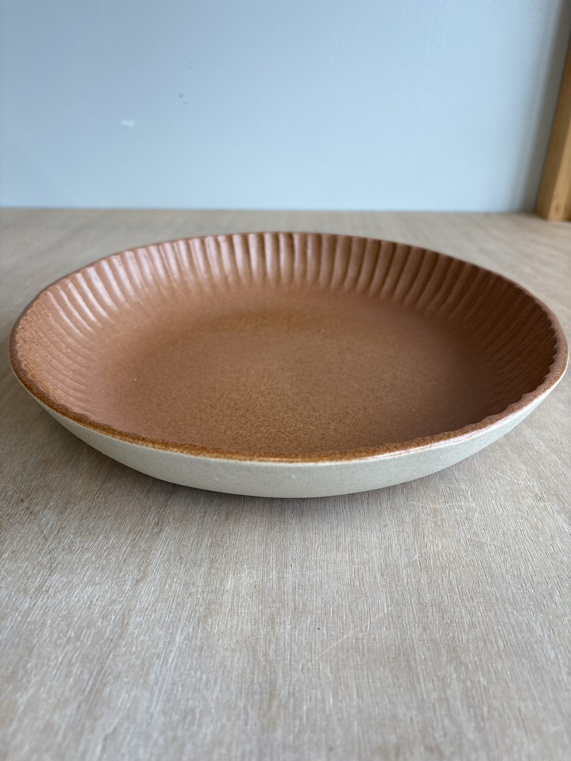 Plat rond décor creusé vieux rose / terracotta