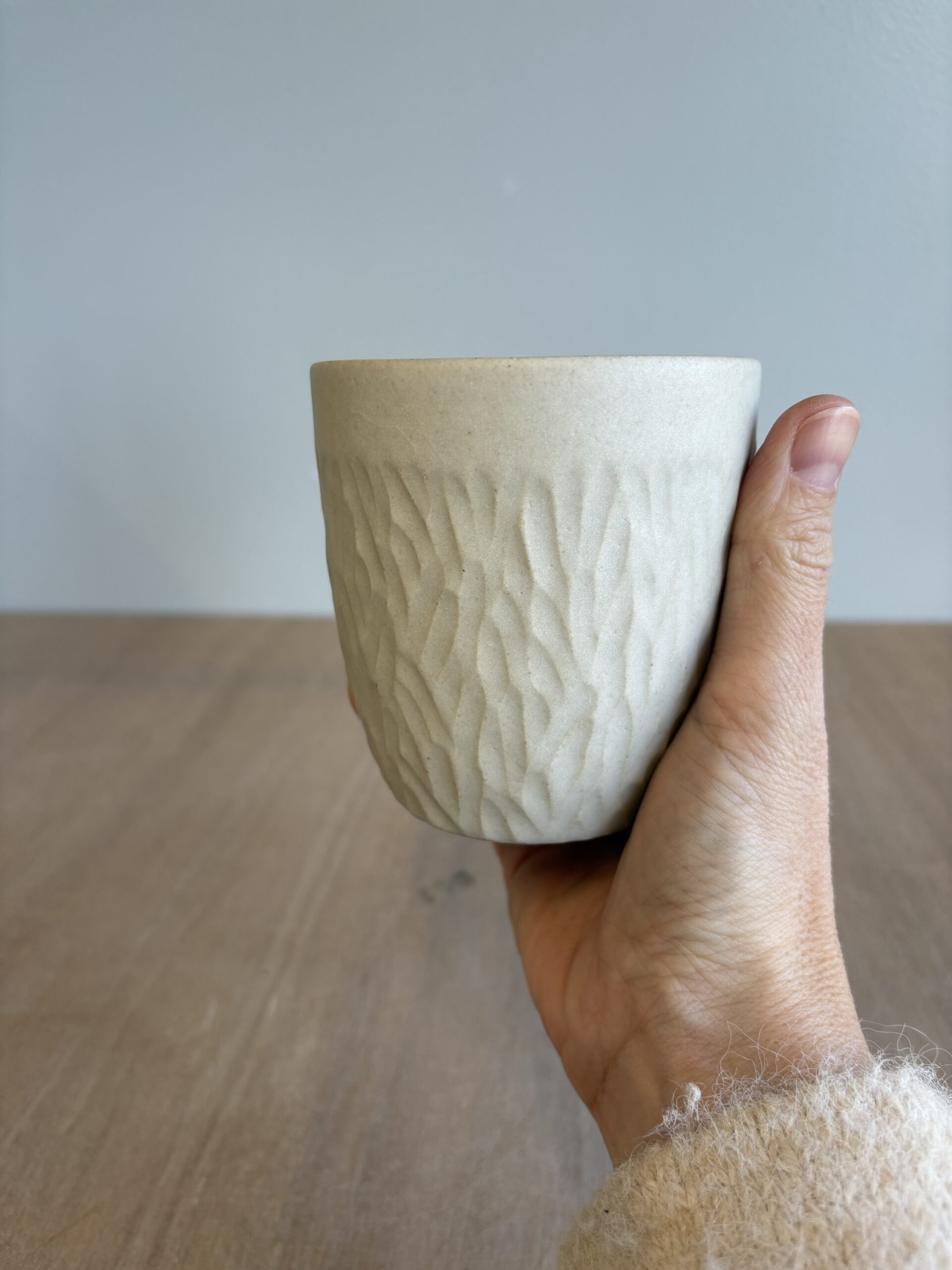 Très Grande tasse ou Mug sans anse naturel décor creusé fin